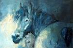 En ineens waren er de paarden... Van blauw naar grijs naar groen,krachtig ,lief ,eigenwijs en sterk. Heerlijk om ze te op doek te zetten en ze karakter te geven, ze zijn ontzettend boeiend . Vreemd dat ik ze nog niet eerder 'ontdekt' heb,ik ben mijn hele leven al omgeven door paarden.